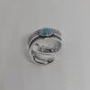 Este anillo esta diseñado en plata .925 con la forma de una pluma enroscada que simboliza conexión y libertad. En el centro destaca una piedra azul que resalta por su delicado marco decorativo, evocando el estilo y las tradiciones del pueblo Navajo. Es un anillo consistente tiene un diseño abierto lo que hace ajustable y cómodo de llevar.
