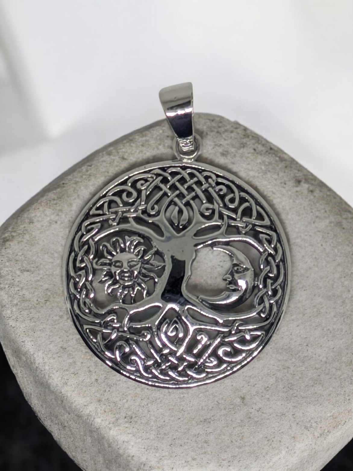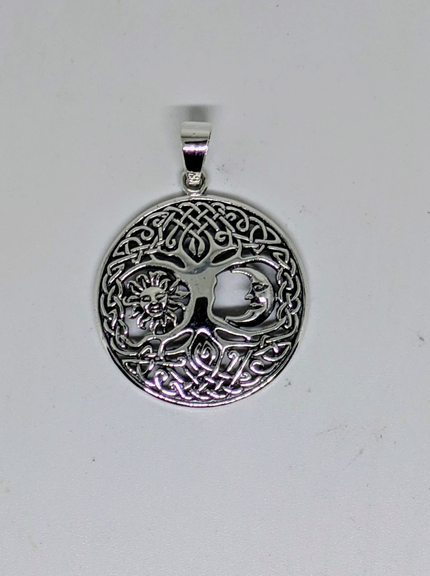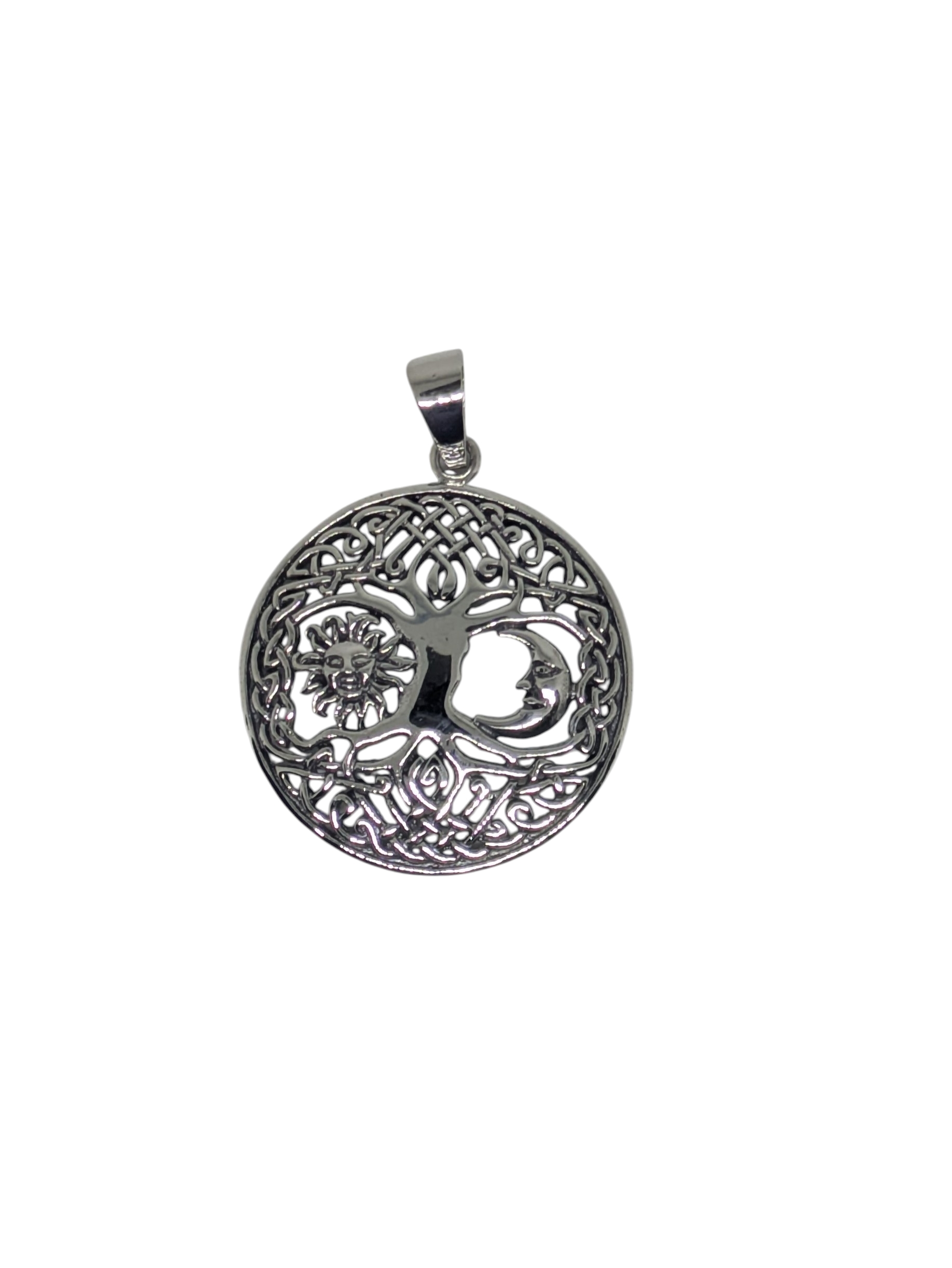 Colgante de plata de ley .925 Arbol de la vida con Sol y Luna