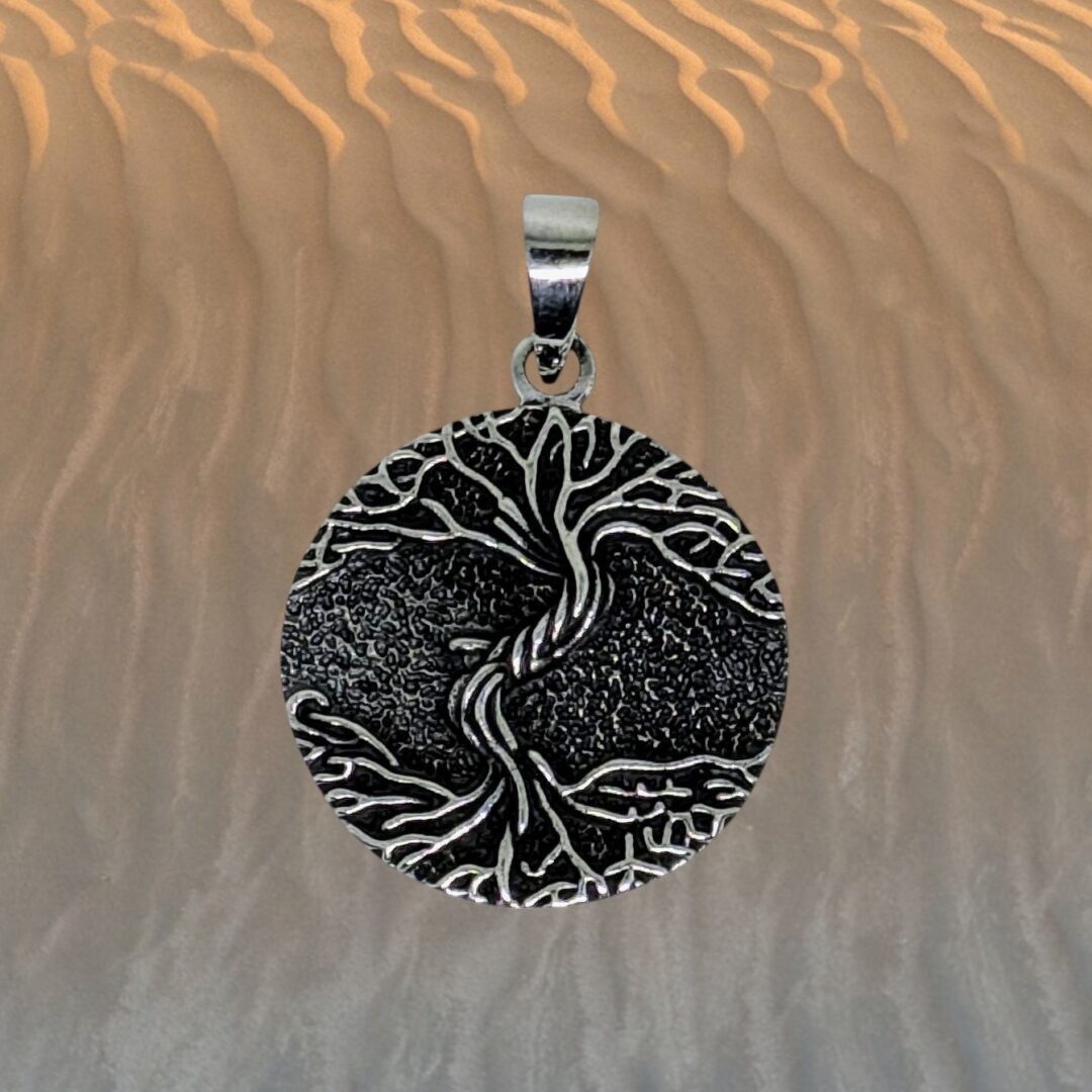 Colgante de plata 925 con diseño de dos lunas y un nudo de brujas en el centro.Esta pieza de 3 cm y con un peso aproximado de 3,5 gramos,combina la fuerza simbolica de la luna con el nudo de brujas,un simbolo antiguo de proteccion y conexion espiritual