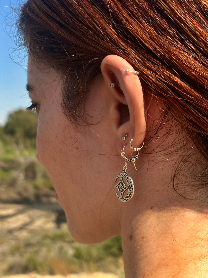 Estos pendientes de plata con Luna creciente y un simbolo celta