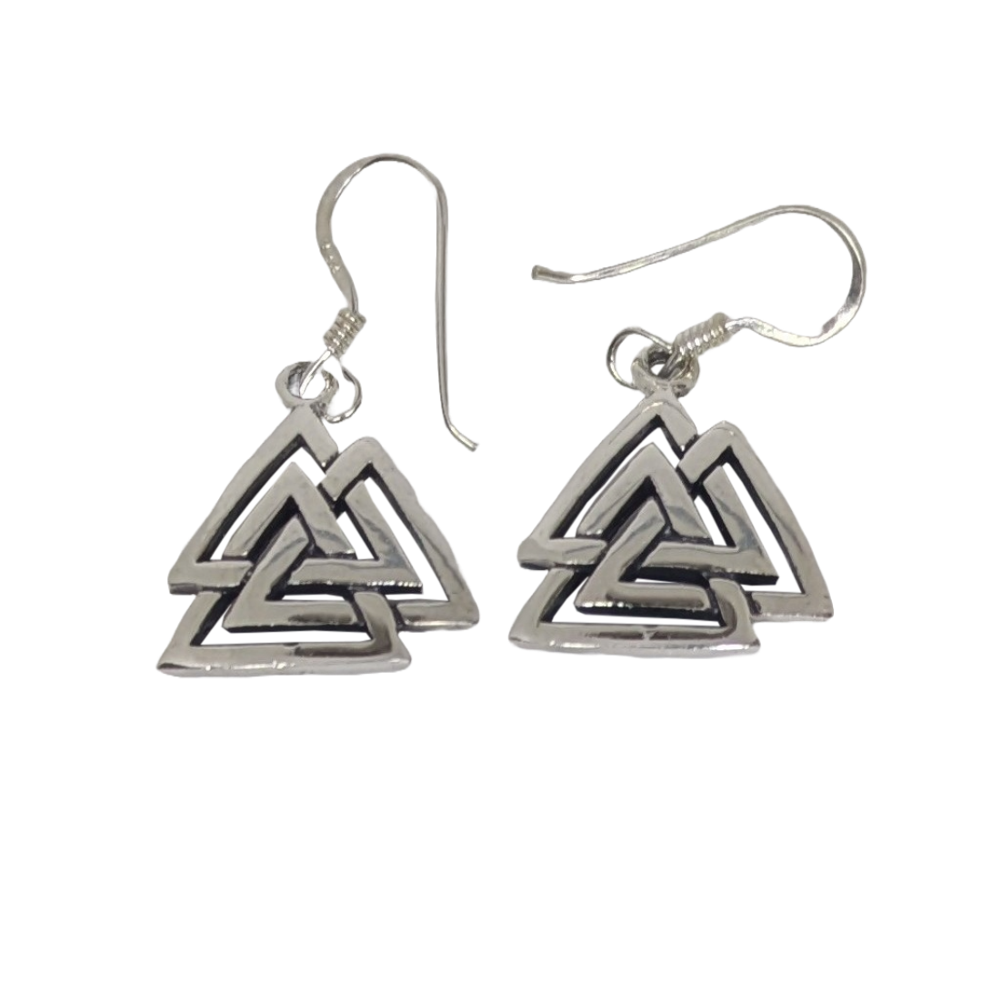 Estos pendientes representan el Valknut, un nudo de tres triángulos entrelazados, vinculado con Odín, el dios supremo vikingo protector de los guerreros y conocedor de los misterios de la vida y la muerte. Estos pendientes son el accesorio para quienes se identifican con la mitología nórdica, la historia vikinga o buscan amuleto de poder y protección.