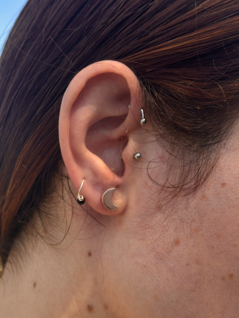 Estos pendientes media luna en plata de ley son el complemento perfecto para cualquier ocasión. Su cierre de presión garantiza comodidad y seguridad, mientras su acabado pulido resalta el brillo natural de la plata.