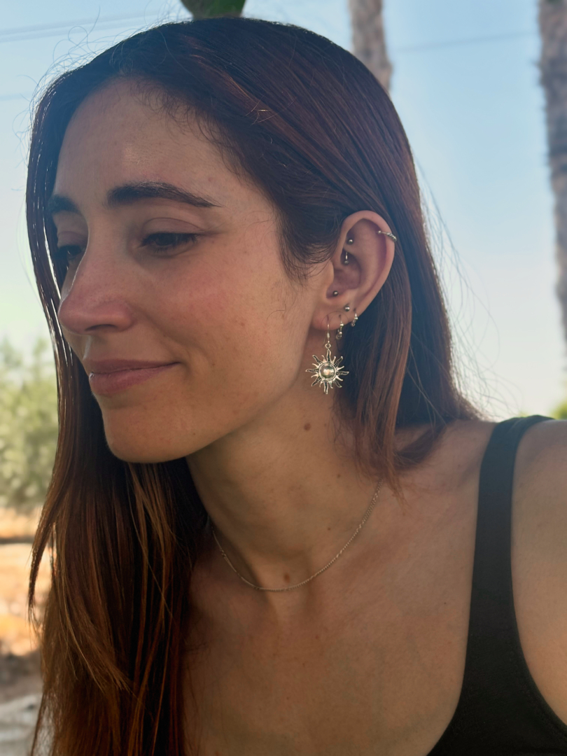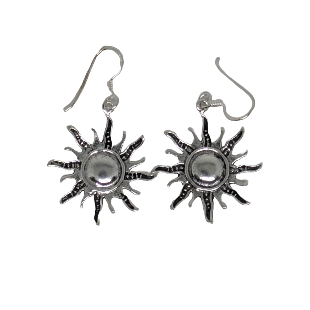 Diseño de plata en dos soles con rayos oscurecidos que hacen que destaque la parte central del sol
